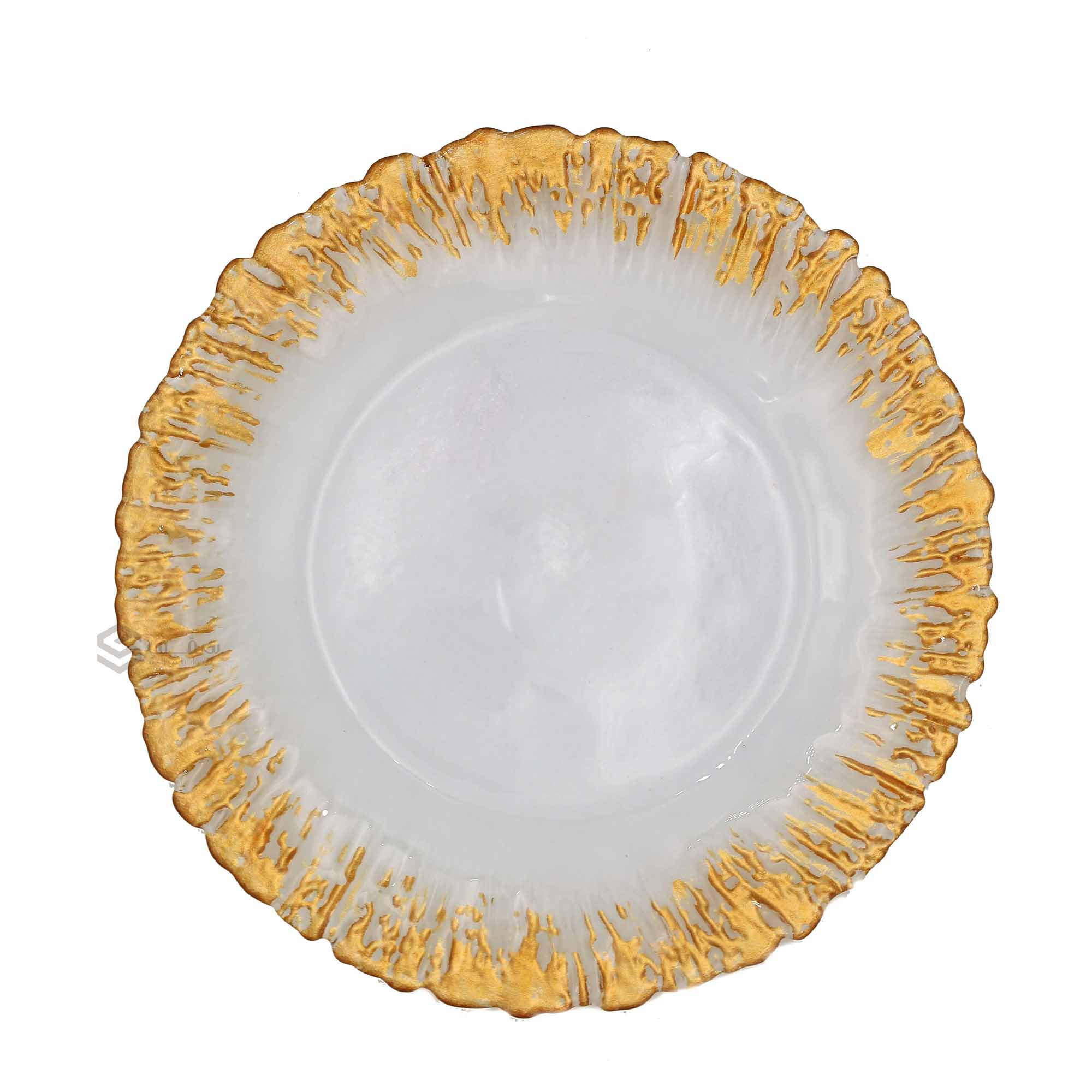 أندر بليت زجاجي فاخر بحافة ذهبية مموجة.