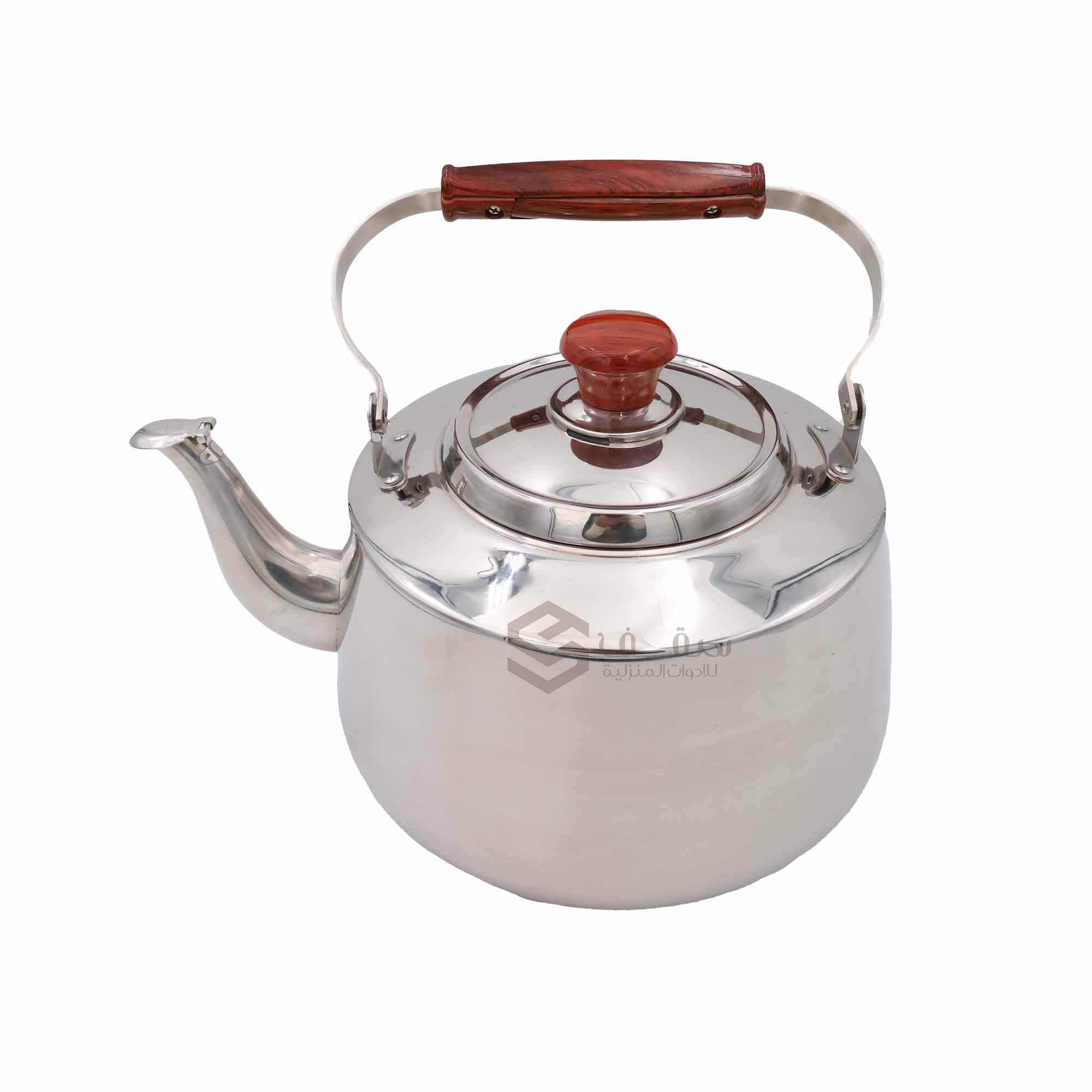 هذا إبريق شاي أنيق مصنوع من الاستيل المقاوم للصدأ بسطح لامع يمنحه مظهرًا عصريًا وجذابًا.