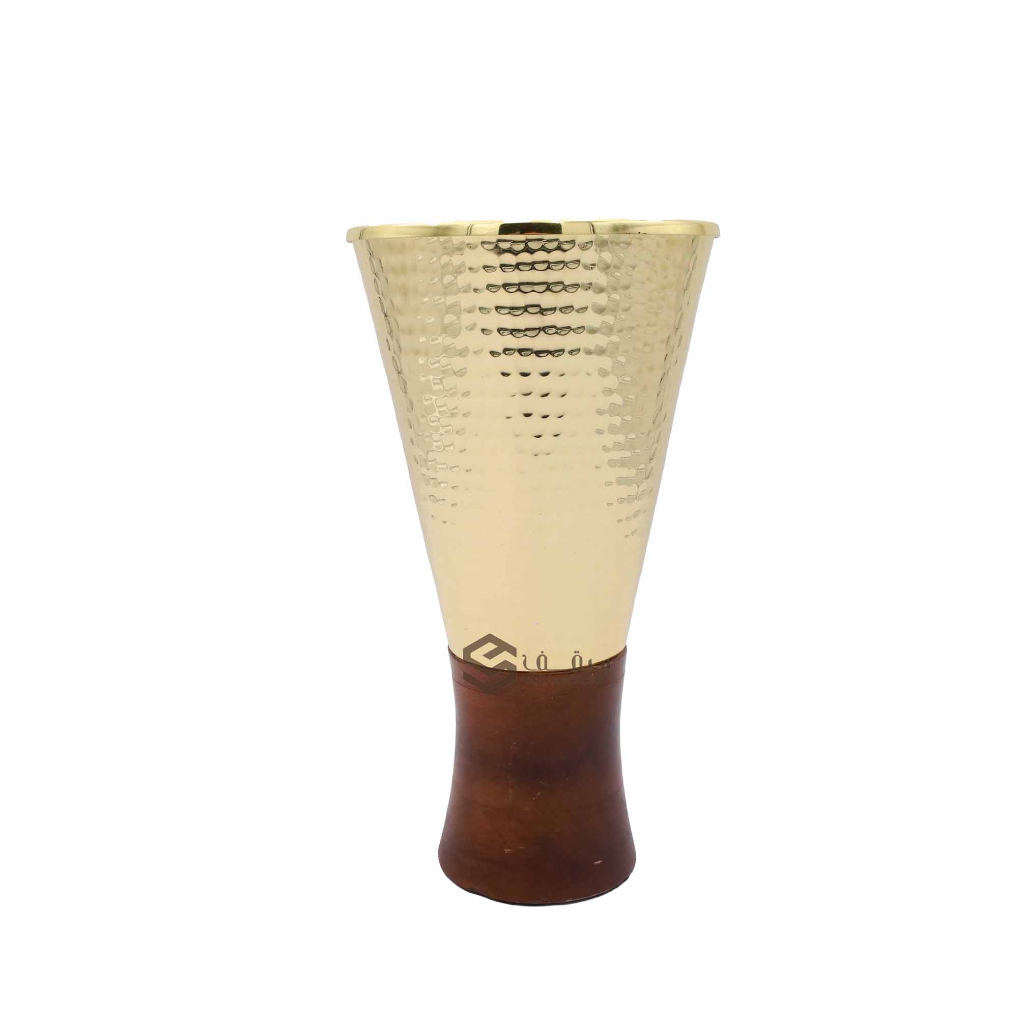 مبخرة هندية أنيقة مصنوعة يدويًا بتصميم يجمع بين الفخامة والبساطة. الجزء العلوي مصنوع من استيل ذهبي مطروق يمنحها لمعة مميزة ولمسة عصرية، بينما القاعدة من خشب طبيعي مصقول يضيف لها طابعًا دافئًا وأصيلاً.