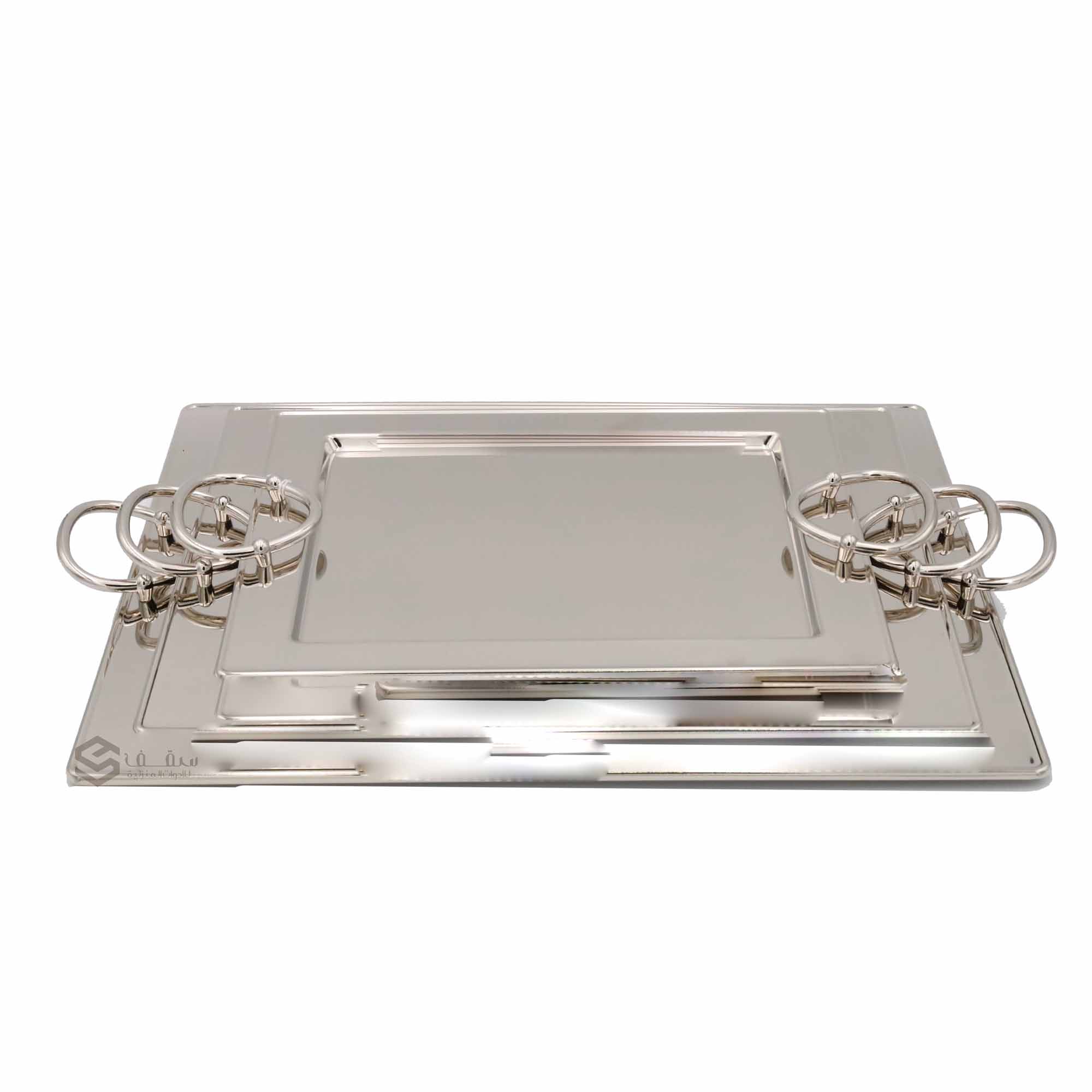 طقم صواني فاخرة بتصميم أنيق يجمع بين الفخامة والعملية، مثالي لتقديم الضيافة بأجمل صورة.