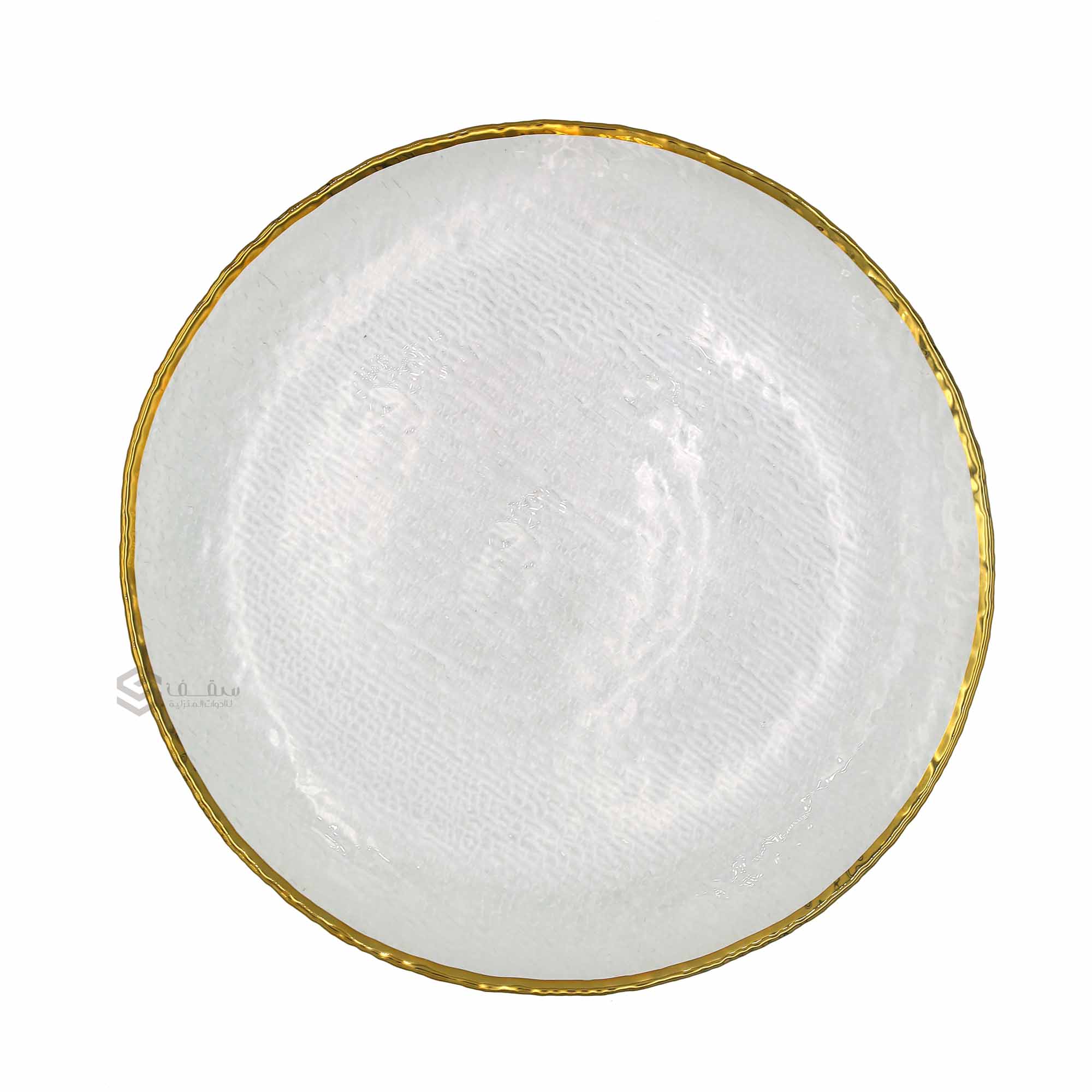 يتميز الطبق بـحافة غير منتظمة أو متموجة (ليست مستقيمة تمامًا)، ومطلية بلمسة نهائية فضية (سيلفر) لامعة، مما يضيف إليه طابعًا عصريًا وشكلاً عضويًا جذابًا