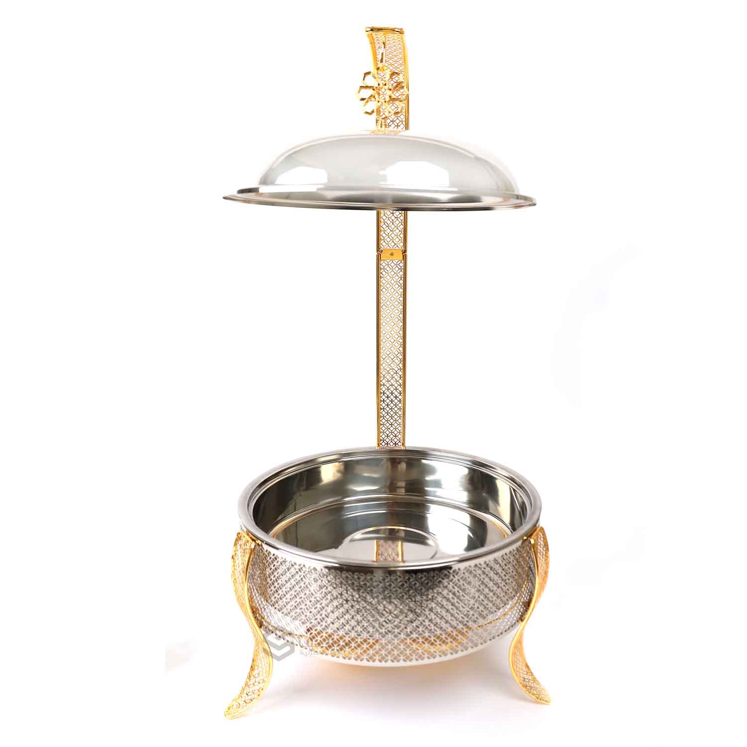 هذا سخان بوفيه استيل مدوّر الشكل بتصميم أنيق وعصري يناسب حفلات الضيافة والمناسبات.