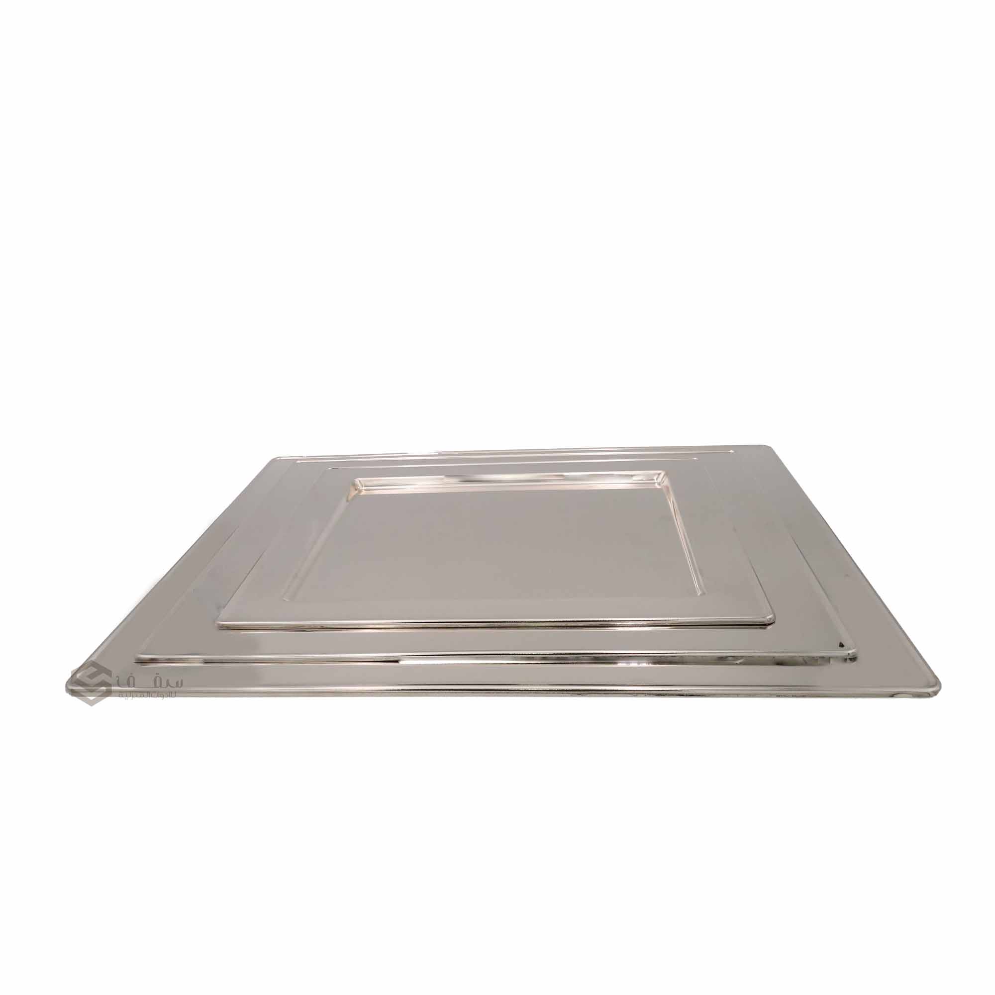 طقم صواني تقديم مربعة مصنوعة من الستانلس ستيل الفاخر بلمعة أنيقة وعصرية.